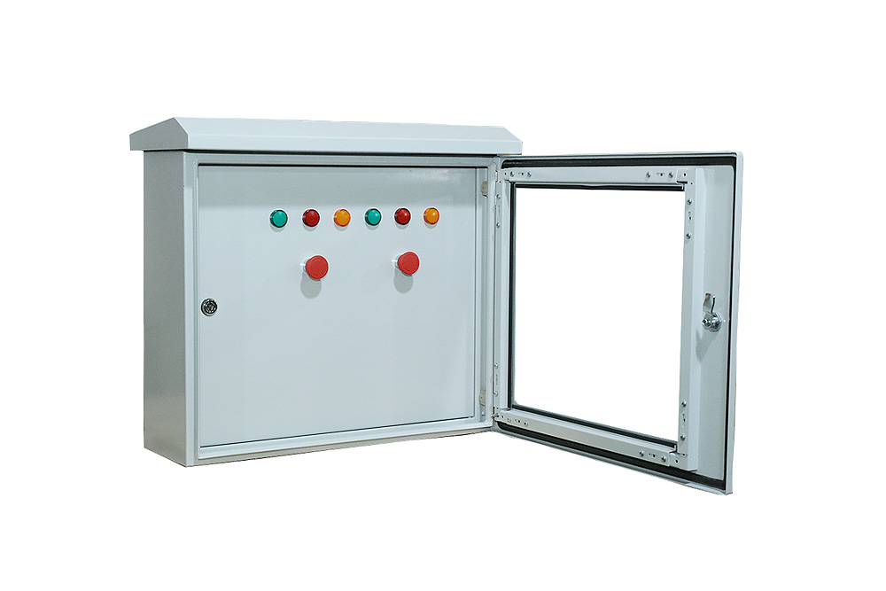 用于户外的水泵、照明等控制设备。户外控制箱最高防护等级可达到IP65,箱体顶部有冒顶,箱体内外门有防水凹槽和防水胶条,可有效防止雨水进入箱体内部,保证供电